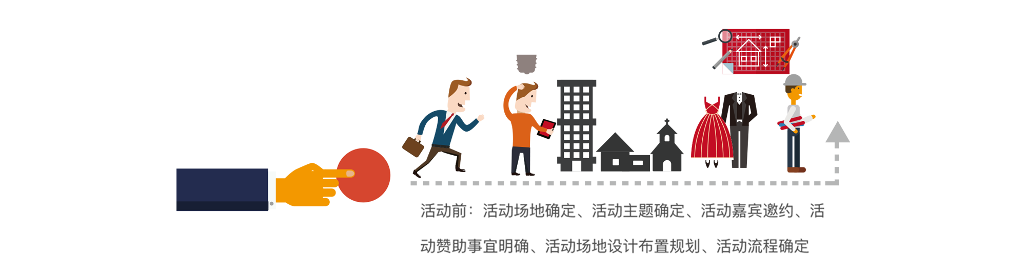 活動(dòng)前:活動(dòng)場(chǎng)地確定、活動(dòng)主題確定、活動(dòng)嘉賓邀約、活